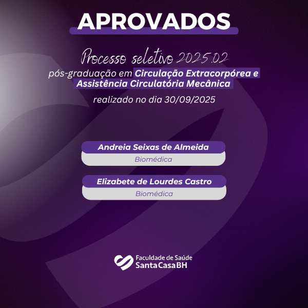 O candidato interessado em realizar o curso de Circulação Extracorpórea e Assistência Circulatória Mecânica da Faculdade de Saúde Santa Casa BH deverá realizar um processo seletivo e, para isto, ele deve estar devidamente inscrito no curso e ter enviado o currículo contendo suas formações acadêmicas para o e-mail faculdade@faculdadesantacasabh.edu.br.