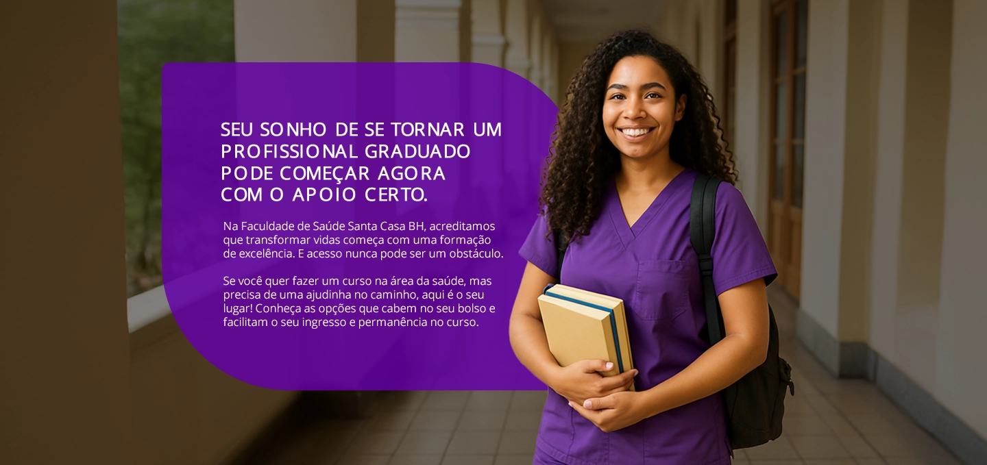 Na Faculdade de Saúde Santa Casa BH, acreditamos que transformar vidas começa com uma formação de excelência. E acesso nunca pode ser um obstáculo.