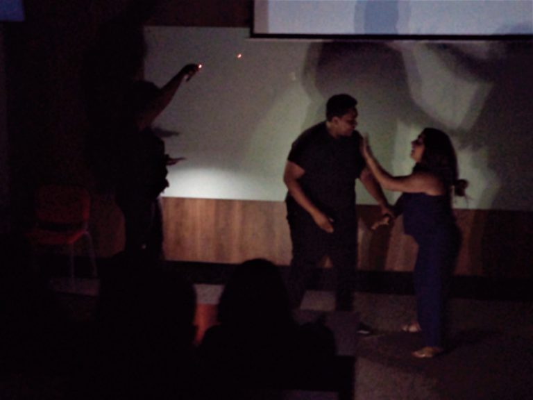 “Durante todo o semestre fizemos grupos separados, mas quando surgiu a ideia da peça de teatro toda sala topou participar. Construímos tudo juntos, e conseguimos realmente trabalhar em equipe”.