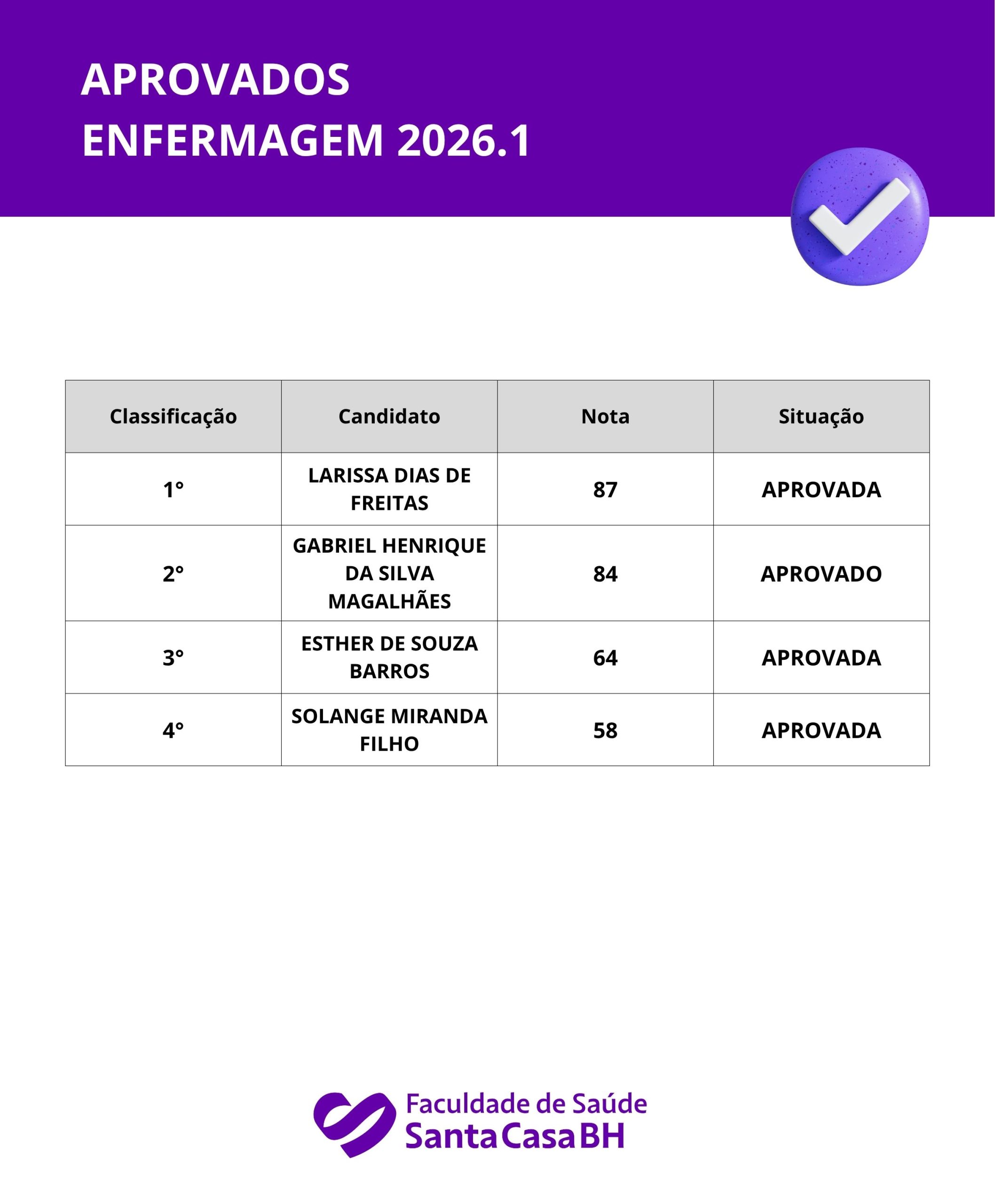 Para ingressar na turma de Graduação em Enfermagem da Faculdade de Saúde Santa Casa BH, o candidato deve: